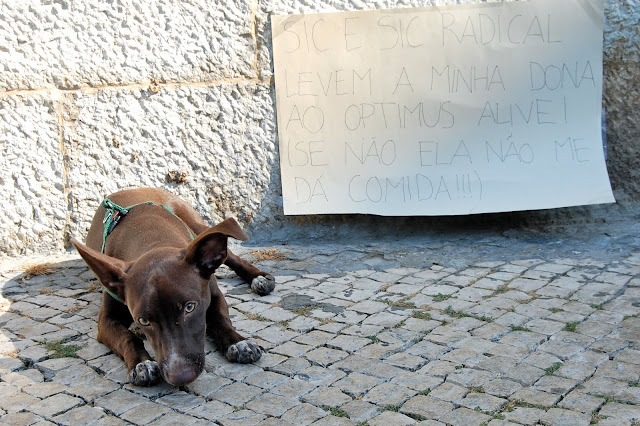 Participei no concurso da SIC Radical, que dava um passe duplo (dois passes portanto) para os 3 dias do festival. Já tenho o bilhete (felizmente consegui), mas participei na mesma. O objectivo era criar um cartaz que dissesse "SIC E SIC RADICAL LEVEM-ME AO OPTIMUS ALIVE!" e tirar uma fotografia original, na rua, com o cartaz. Aqui fica a minha fotografia. Não ganhei.